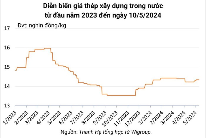 Giá thép xây dựng chốt năm 2023 ở mức 13,8- 15,3 triệu đồng/tấn. Bước sang năm 2024, mảng thép xây dựng “chào sân” bằng một đợt tăng giá 150.000 – 370.000 đồng/tấn, lên mức 14 - 14,5 triệu đồng/ tấn và đi ngang đến cuối tháng 2.