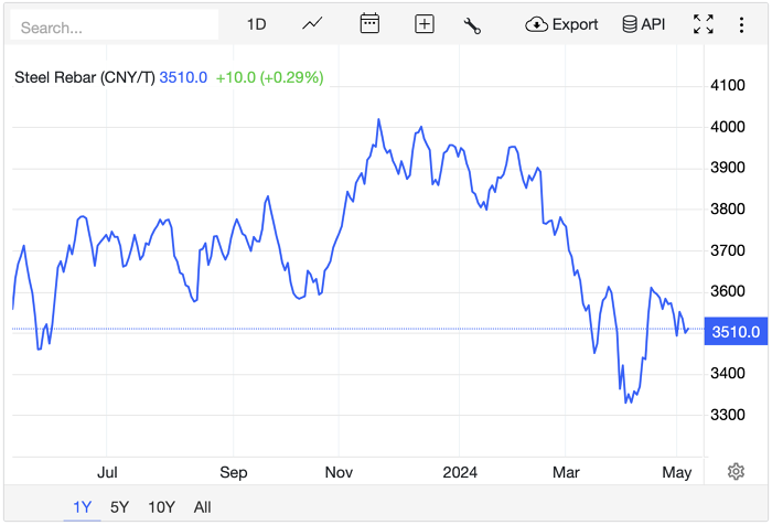 Giá thép giao tháng 9/2024 trên Sàn giao dịch Thượng Hải tăng 10 nhân dân tệ lên mức 3.510 nhân dân tệ/tấn tại thời điểm khảo sát vào lúc 9h45 ngày 10/5 (theo giờ Việt Nam).